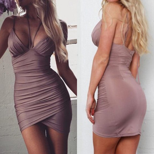 Sexy Backless Deep V-neck Sling Bodycon Dress