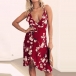 deep v-neck and slit hem design make this piece look so sexy and charming,while its vibrant floral