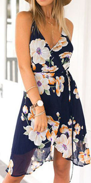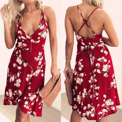 The floral print dress makes it easy for any girl to look effortlessly charming. Sling style,its backless,