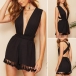 This romper comes with a classic yet flattering black tone,the backless and deep v-neck design can