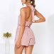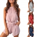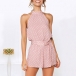 Achieving for a shinny style with this relaxed romper! Halter style,with backless design,