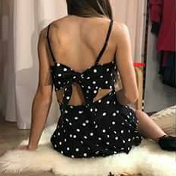 This dress is designed with dots printed element,which can give you a playful and energetic style.