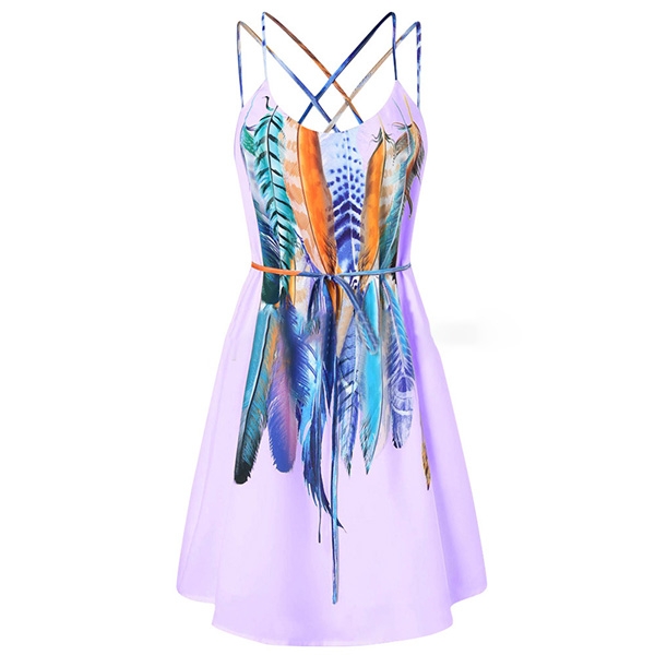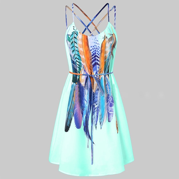 The sling and backless design will offer you a sexier look,while the feather printed pattern design
