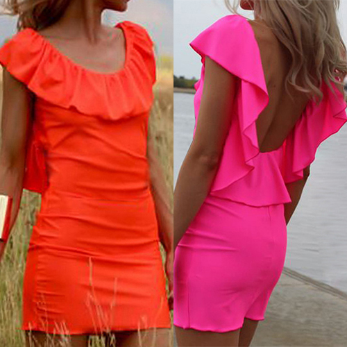 Boasting a solid color,its backless,flouncing and fit silhouette makes this piece more sexy and charming.