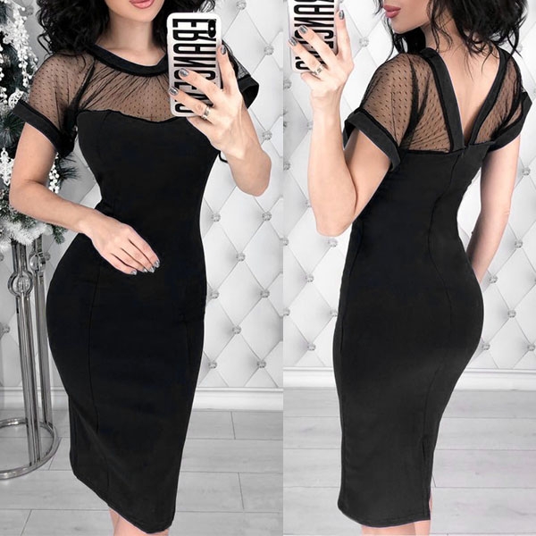 Add a touch of beauty to your look with this short sleeve dress. Its alluring design details like backless and see-through