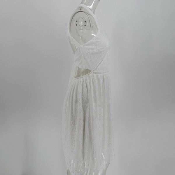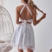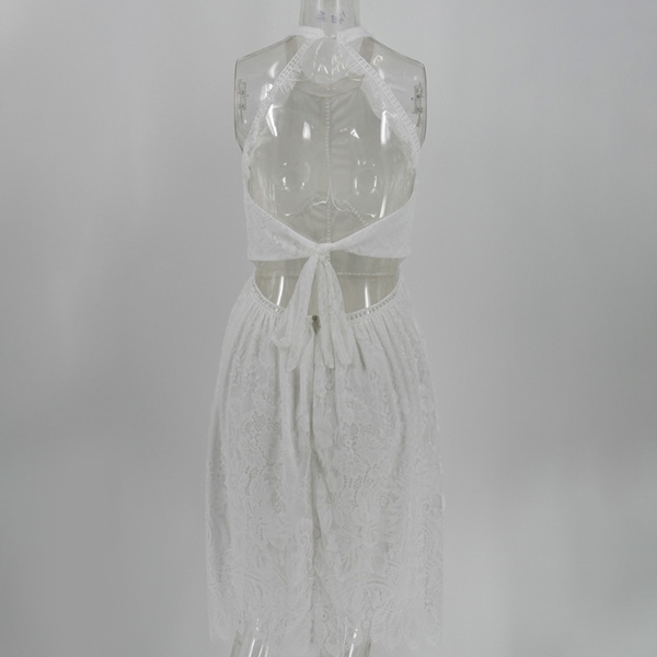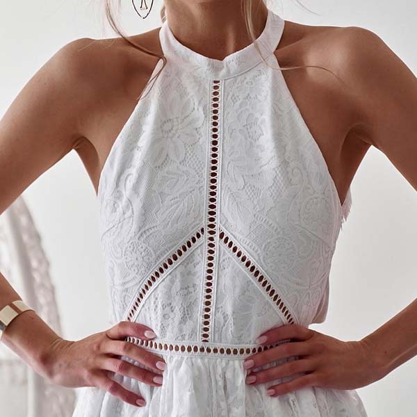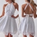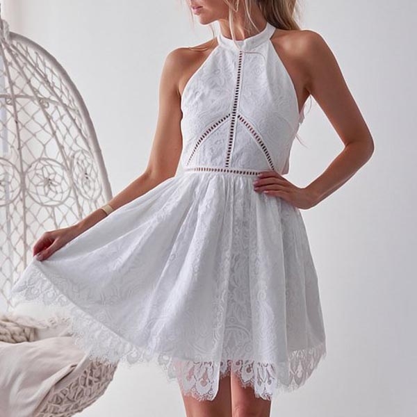 You're sure to arouse a splash with this alluring lace dress. Halter style,with backless and high