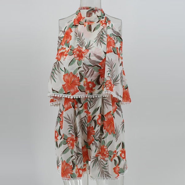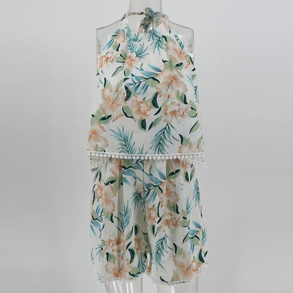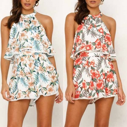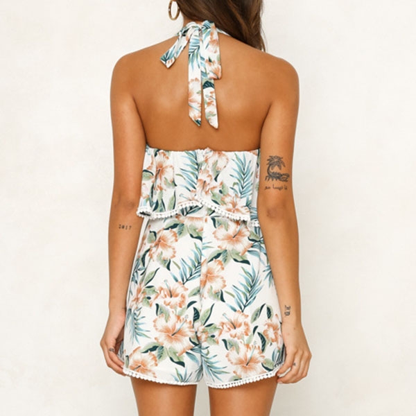 and beautiful in this romper.It boasts vibrant printed details,the backless and halter design make it look