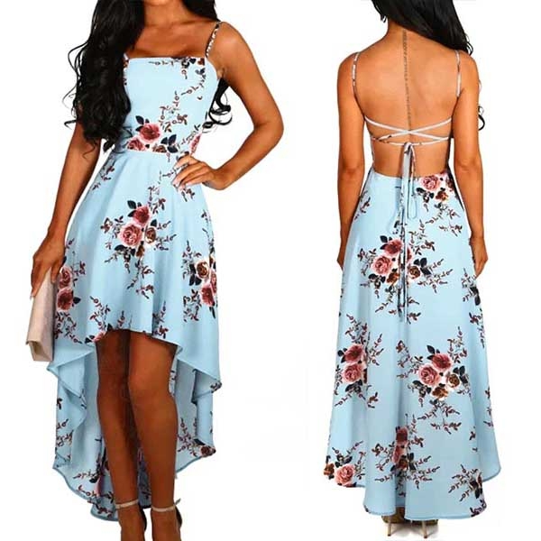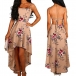 Sling and backless design can make you look sexier. Boasts vibrant floral print,the high-low hem design