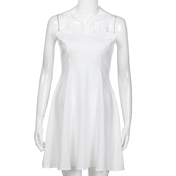 Sexy Sleeveless High Waist Lace Hollow Out A-line Dress
