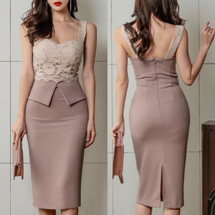 like backless,slit hem and lace spliced design make this piece look so sexy and flirty,while the