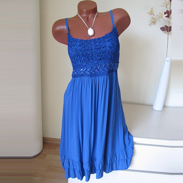 Boost your beautiful charms with the help of this dress. Sling style,with backless and lace spliced design,