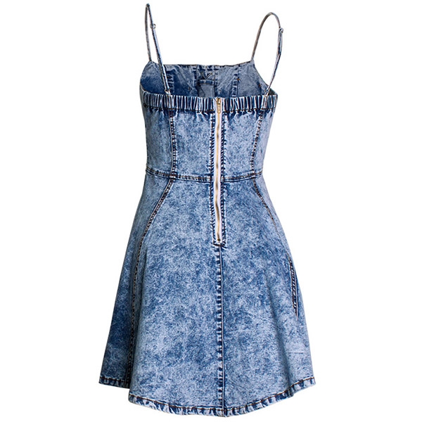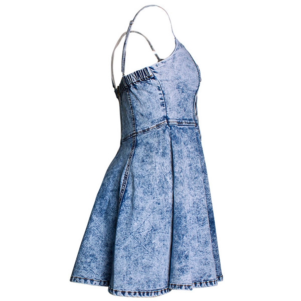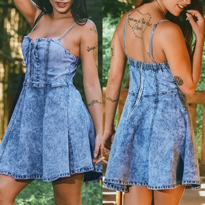 You can easily exude your sexy and flirty side through this denim dress. Sling style,with backless and