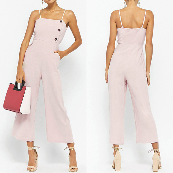 into this jumpsuit! Solid color tone design can lend you a dash of elegant vibes,and the sling and backless