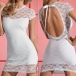 Hollow out lace spliced style,with backless and a a super fit silhouette,this dress