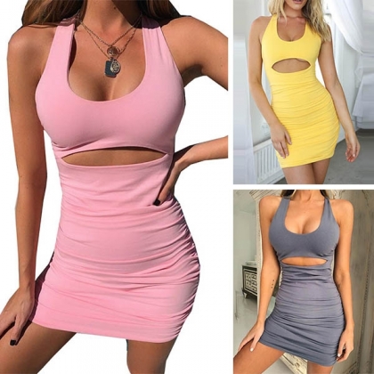 sleeveless dress. Solid color style,the backless and hollow out design can exude your