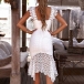 its alluring design details like backless,irregular hem and lace spliced design make this piece look