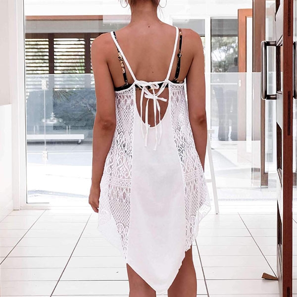 irregular hem and lace spliced design make this sling dress look so sexy and flirty. When heading to