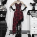 Sexig rygglös oregelbundet fållad rutigt mönstrad slipklänning