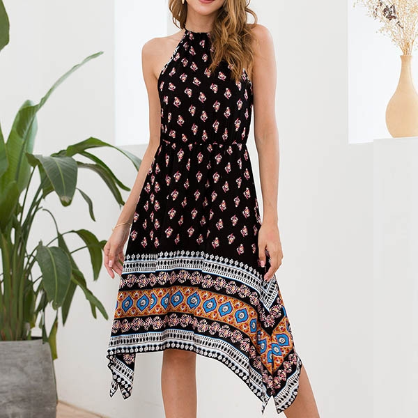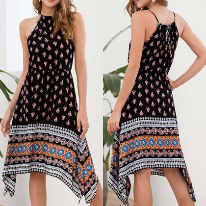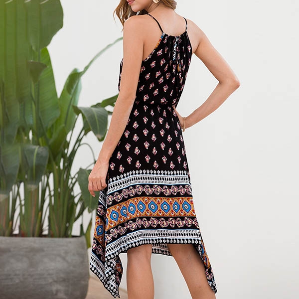This printed dress makes it easy for any girl to look effortlessly charming. Sling style,