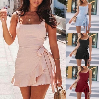 the backless and ruffle hem design will further enhance your feminine appeal,while the side lace-up design will highlight