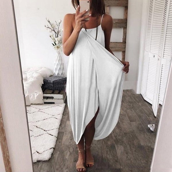 the backless and irregular hem will lend you a more charming look,while the soft fabric and loose
