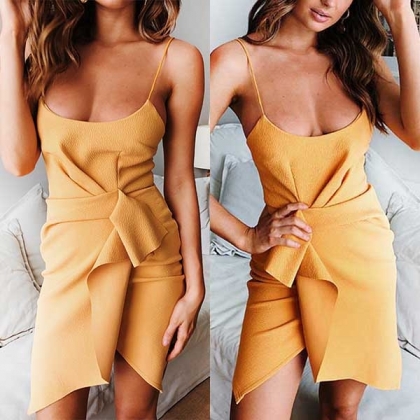 Exude your charming feminine appeal with this dress. Sling style,the backless and irregular hem design