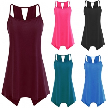 Sexy Backless Irregular Hem Solid Color Sling Top