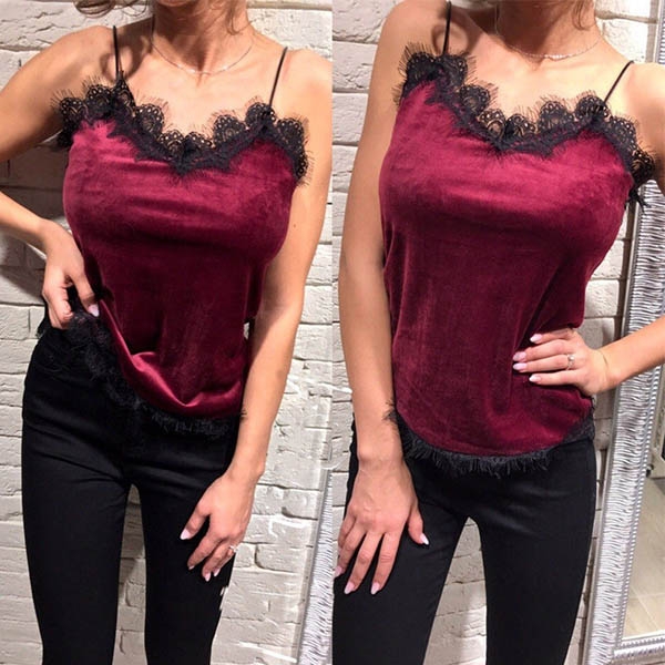 Let your feminine style bloom with the help of this cami top. Sling style,with backless and lace spliced design,