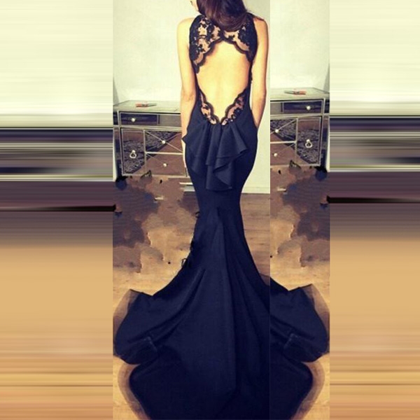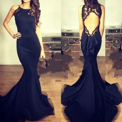 Sling style,the backless,lace spliced and floor-length hem design make this piece look so sexy and alluring.
