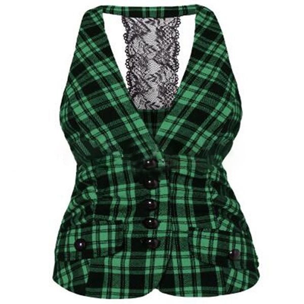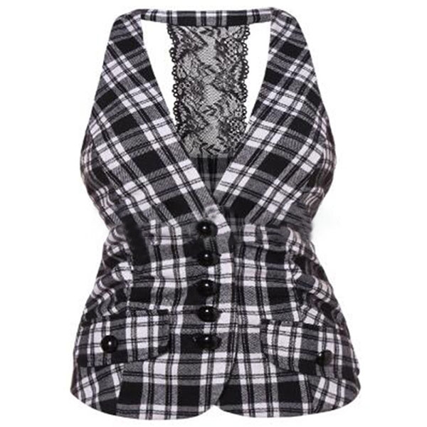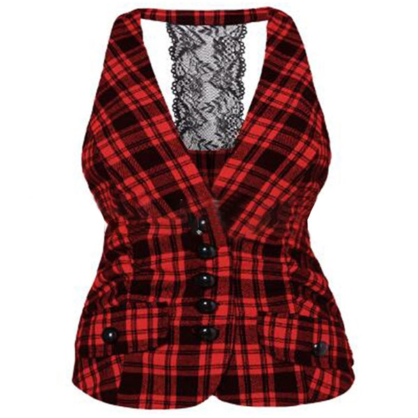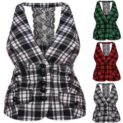 Sexy Backless Lace Spliced Single-breasted Plaid Vest(It falls small)
