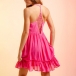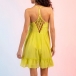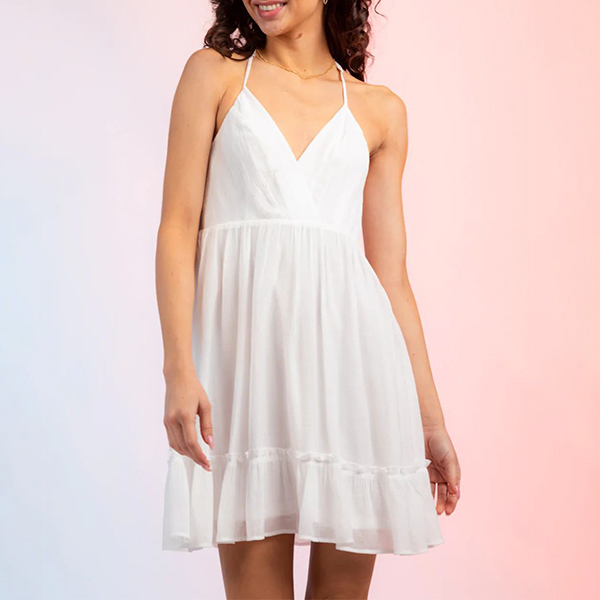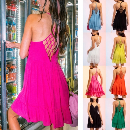 På dessa soldränkta sommardagar är det en bra chans att exponera en antydan om din skadliga hud genom den här klänningen.Selastilen, den rygglösa v-ringningen med snörning och volangfåll gör att det här plagget ser så sexigt och lockande ut.För dina stranddagar är denna avslappnade klänning det perfekta valet.