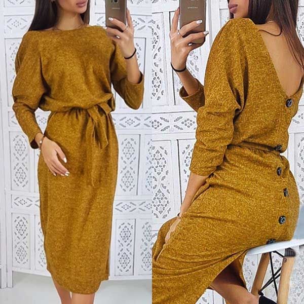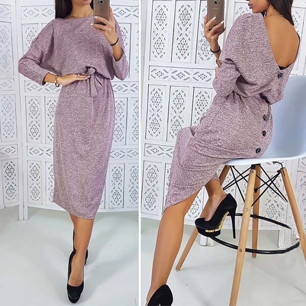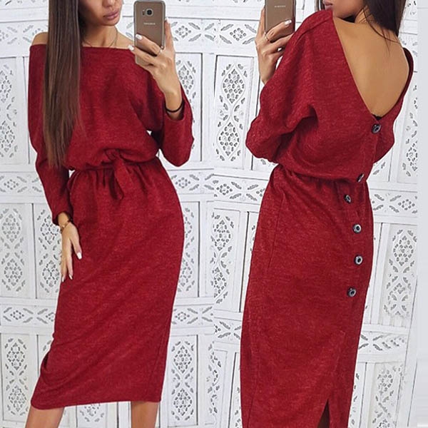 Add a touch of beauty to your look with this long sleeve dress. The backless and slit hem design will give