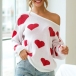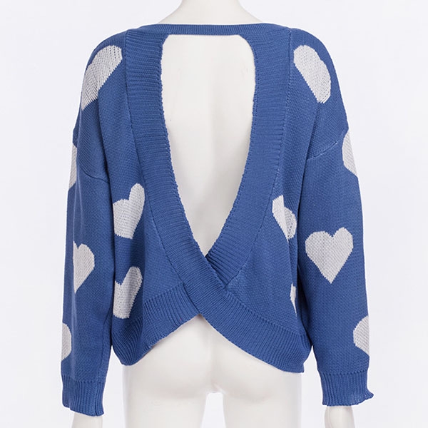 This knit top is designed with heart printed pattern,chic and eye-catching. The backless design