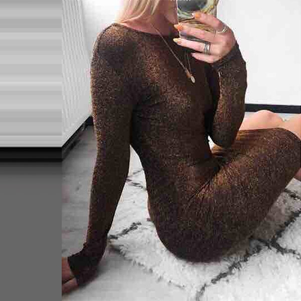 long sleeve,round neck and a fit silhouette,this dress can showcase your perfect figure. Moreover,