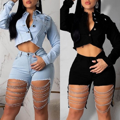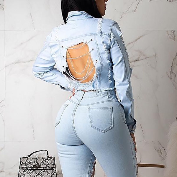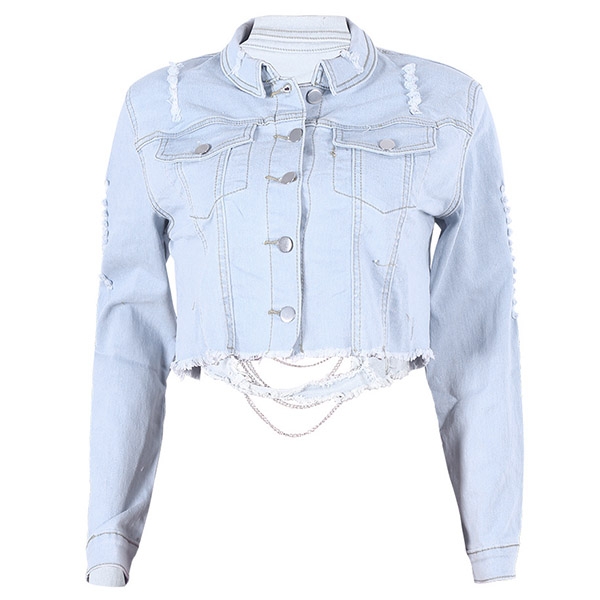 Wow,have you ever seen such a chic and sexy denim coat? Short-style design,finished with long