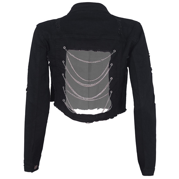 sleeve and POLO collar,classic yet stylish. Moreover,the backless,chain and ripped details will