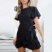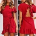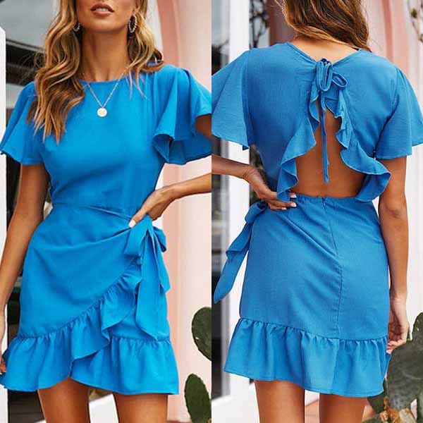Sexy Backless Lotus Sleeve Irregular Ruffle Hem Dress
