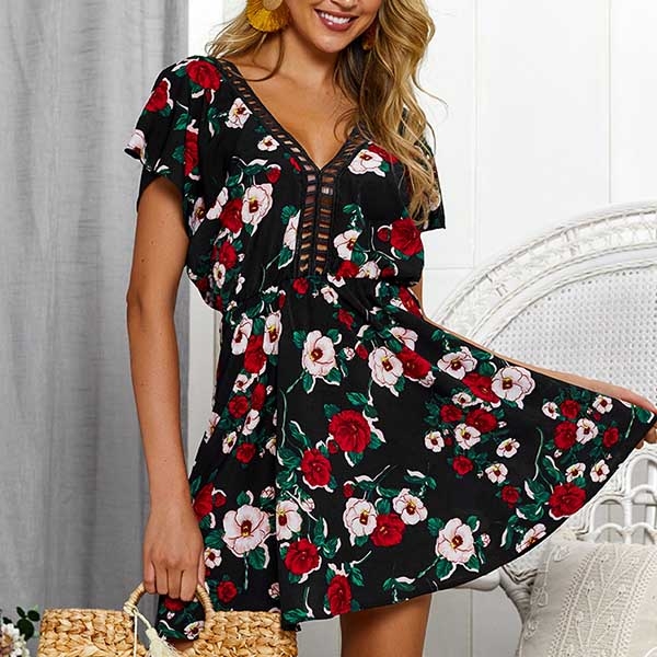 printed pattern,with short sleeve and lotus sleeve design,the backless and v-neck design will make you look flirty.