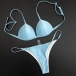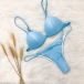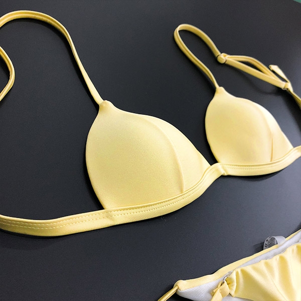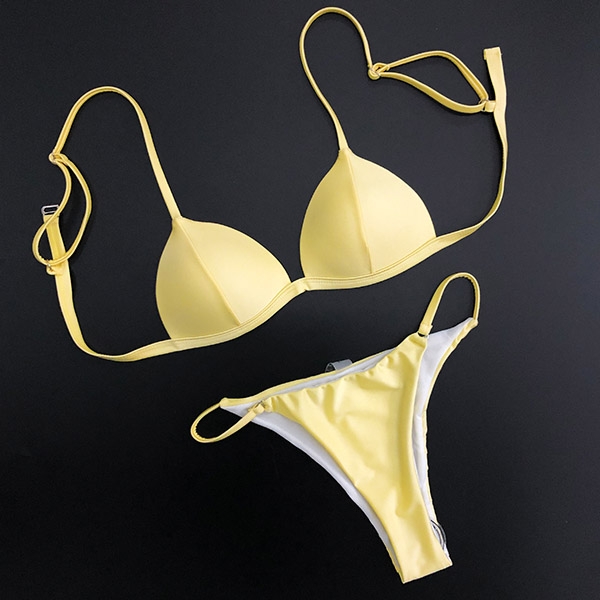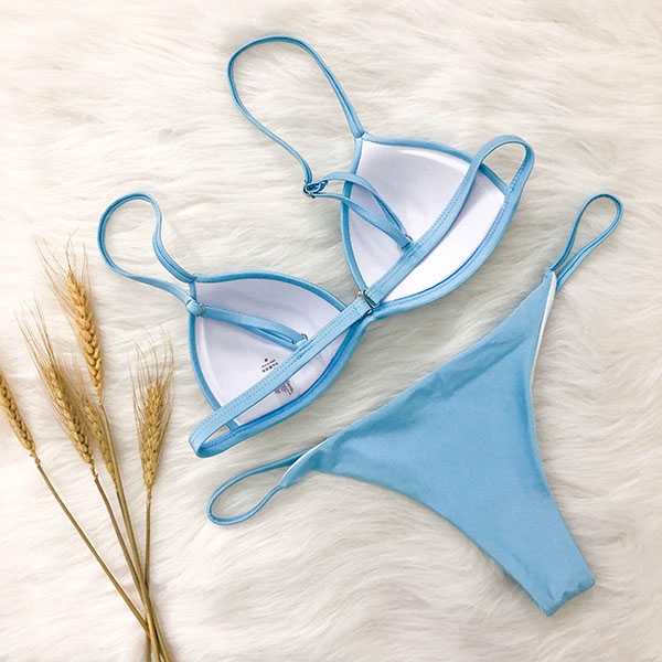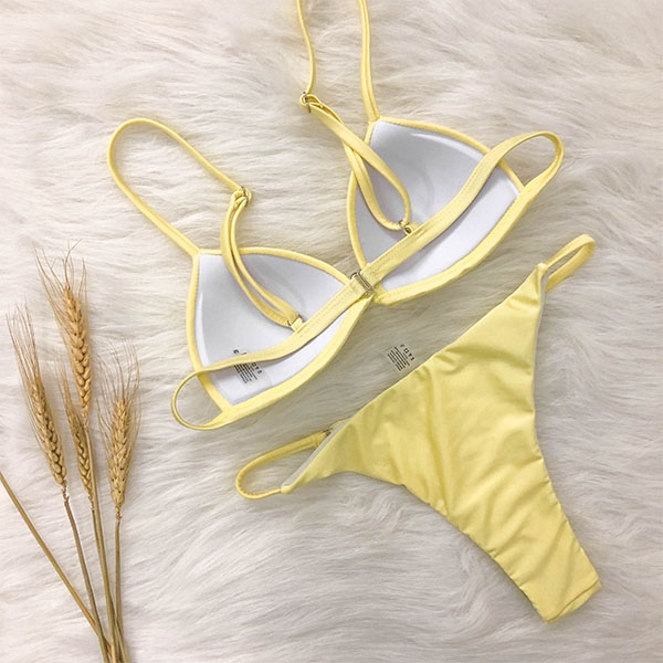 is essential. How about this piece? Solid color style,including a backless bikini top and a low-waist bikini bottom,
