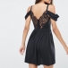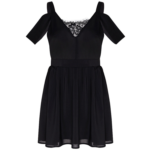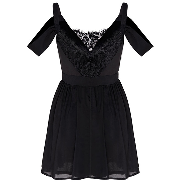 black tone,with backless,off-shoulder and lace spliced design,this dress can give you a