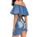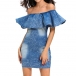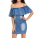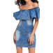 Exude the allure and feminine vibe when you slip into this denim dress. Styled with backless,off-shoulder and ruffle