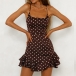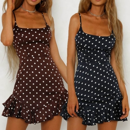 and ruffle hem design,sexy and alluring. The dots printed details will make this piece look more