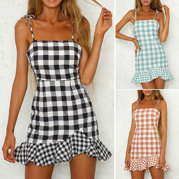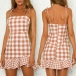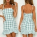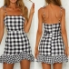 Sexy Backless Ruffle Hem Slim Fit Sling Plaid Dress