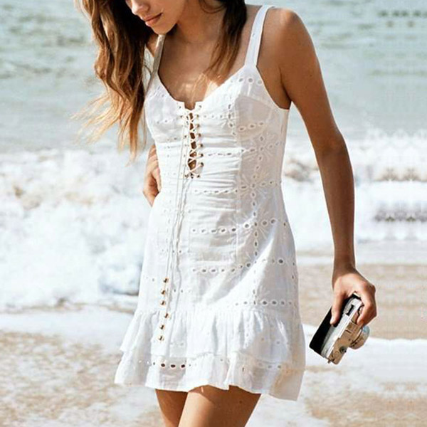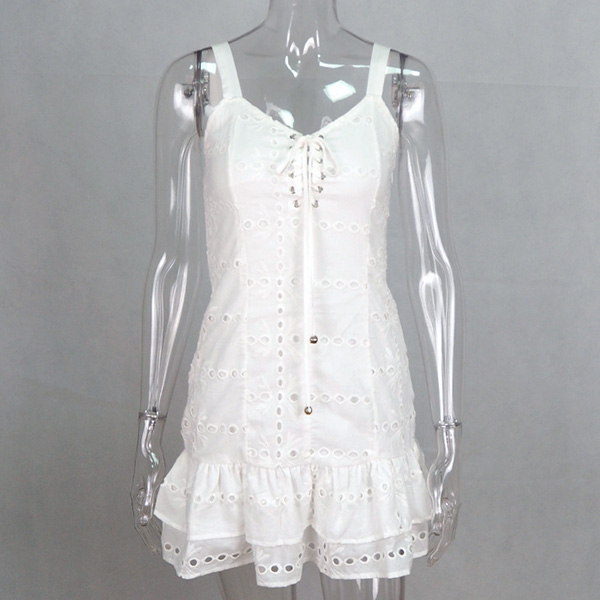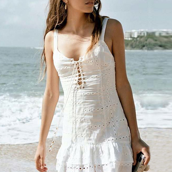 ruffle hem design,which make this piece look so feminine and alluring. The lace-up design at the neckline