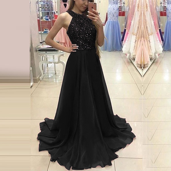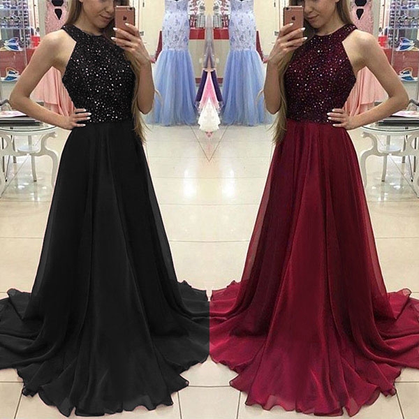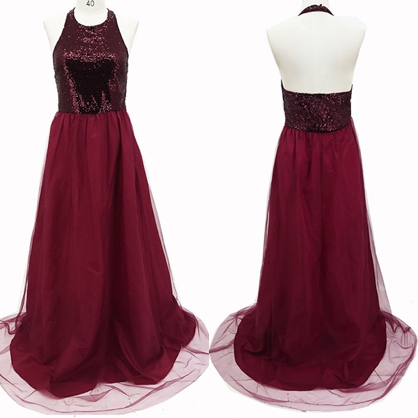 You don't need to wonder why all eyes are on you when you don this dress! Halter style,with backless design,sexy and alluring. And the sequin
