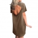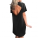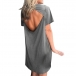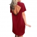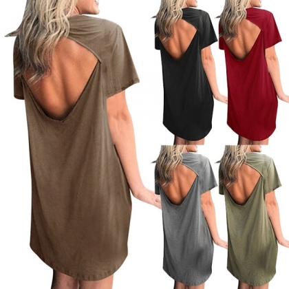 Sexy Backless Short Sleeve Round Neck Solid Color T-shirt Dress