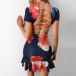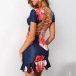 eye-catching printed details,the hollow out lace-up and ruffle hem design can easily portray