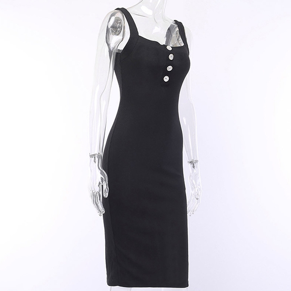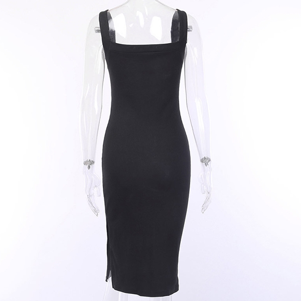 Sling style,with backless and slit hem design,sexy yet alluring. The fit silhouette and black