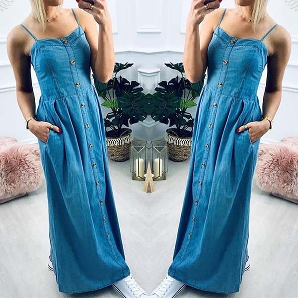 You will be the center of attention with all eyes on you when you wear this denim dress.