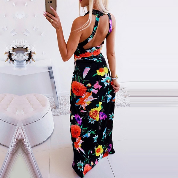 more attention. Features eye-catching printed details,with sleeveless,backless and a maxi length,this